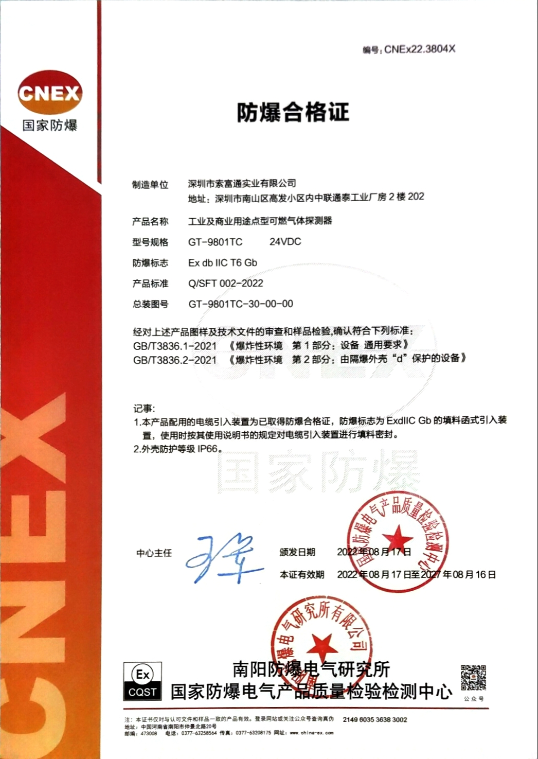 ??深圳市索富通實業有限公司,成本于1995年,是一家研發、生產和銷售可燃氣體報警器,氣體檢測儀的生產型企業。 公司秉承 “ 以德惠人,以誠愛人 ” 的經營宗旨,自公司成立以來,堅持以質量與誠信為先導,產品研發與市場銷售并重,秉承“以人為本,互惠互贏”的理念,與資深氣體分析檢測學家保持合作,長年提供最先進的科研技術支持,公司也一直與且有國際先進水平的傳感器制造商密切合作,確保了產品品質和競爭優勢。公司所生產的產品已通過國家消防電子產品質量監督檢驗中心及國家防爆電子產品質量監督檢驗中心的檢驗,并取得了由國家消防認證委員會頒發的《產品型式認可證書》,產東省質量技術監督局頒發的《制造計量器具許可證》,由UKAS頒發的《ISO9001:2000》。